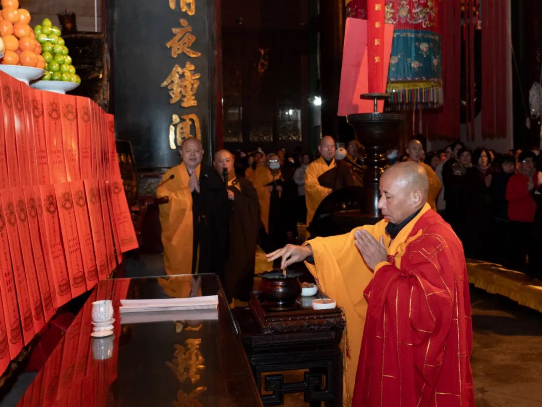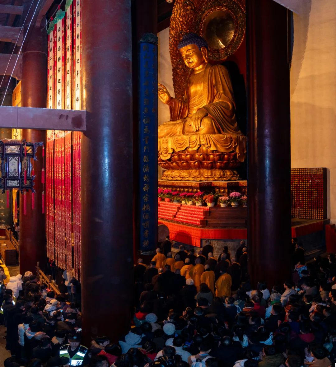 寒随一夜去,春逐五更来。1月28日,适逢甲辰除夕,杭州灵隐寺于此辞旧迎新之夜在大雄宝殿举行众姓迎春吉祥普佛法会。