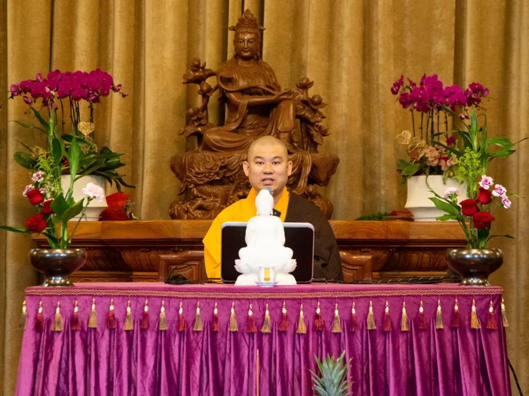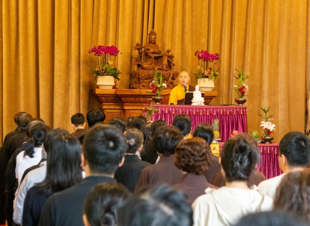 法师为在场大众详细讲解了地藏菩萨过去修行的本愿故事、地藏菩萨的孝道精神以及《地藏经》中所说的因缘果报等,鼓励在场大众依照地藏菩萨法门精进修行,深信因果、严持戒律,发菩提心、行菩萨道。