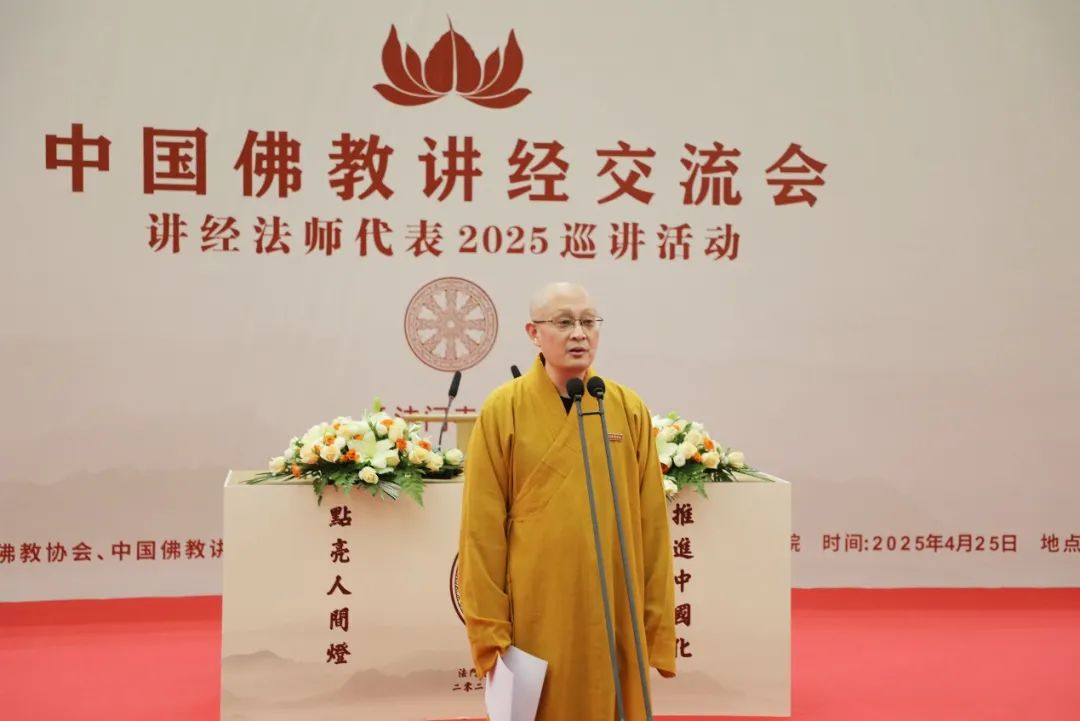 4月25日,由中国佛教协会主办,陕西省佛教协会、中国佛教讲经交流基地协办,宝鸡市佛教协会、法门寺佛学院及法门寺承办的中国佛教讲经交流会讲经法师代表2025巡讲活动(法门寺站)在陕西扶风法门寺举行。法门文化景区管委会主任范荣,景区纪检监察工委书记杨翰靖,景区管委会副主任杜军杰,中国佛教协会教务部主任、中国佛教讲经交流基地副主任长顺法师,陕西省佛教协会副会长、宝鸡市佛教协会会长、法门寺佛学院院长、法门寺住持宽严法师,宝鸡市佛教协会驻会副会长宏硕法师,法门寺佛学院僧众及当地信众共200余人参加活动。▲陕西省佛教协会副会长、宝鸡市佛教协会会长、