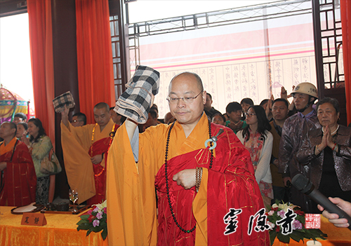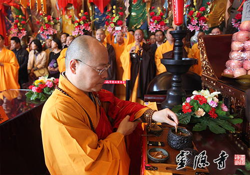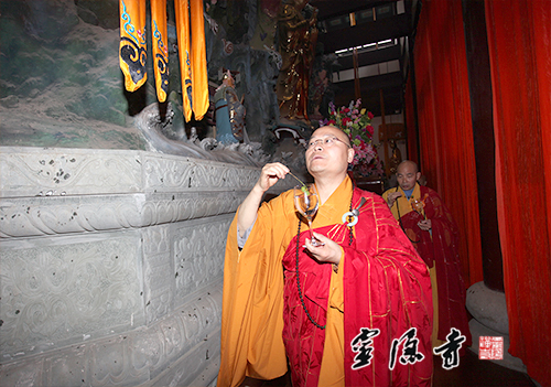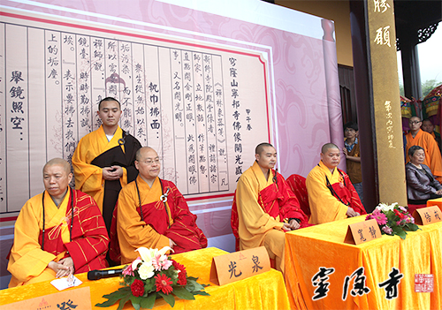 2014年5月18日,我寺方丈光泉大和尚赴江苏苏州,参加穹窿山宁邦寺大雄宝殿全堂佛像开光庆典法会,与江苏省佛教协会会长心澄大和尚、副会长普仁大和尚等诸山大德长老共同主法,为宁邦寺大雄宝殿全堂佛像开光,并现场致贺,祝愿宁邦寺在监院常德法师的带领下,道场兴隆、海众晏和。