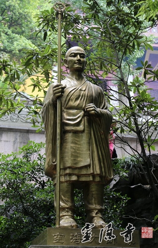 编者按:这位空海大师曾经于公元804年到大唐求法,回国后根据中国草书,创立了平假名,统一了日本文字。据说他在浙江宁波被地方政府拒绝上岸,向南辗转千里,来到福州,还是被拒绝上岸,最后用汉字写下了一篇文辞俱佳的告白给当地官员,官员怜其才华,才准予上岸。然后他由福建途经杭州,来到灵隐寺参拜,灵隐寺华严殿前面的山坡竹林中的那尊空海大师铜像,至今还屹立在那里,这是2002年11月,两国为纪念"中日友好三十年"而建的。