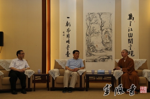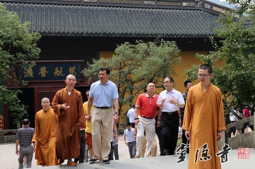 2014年8月31日,浙江省委常委、浙江省常务副省长袁家军在省民宗委主任冯志礼的陪同下,来到灵隐寺指导工作,灵隐寺监院衍空法师热情接待了袁家军副省长一行。