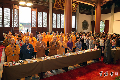 浙江省佛教协会副会长、天台国清寺方丈允观法师,温州市佛教协会副会长、温州妙果寺监院达照法师,嘉兴市佛教协会会长、嘉兴香海禅寺监院贤崇法师,普陀山佛教协会副会长、普陀山慧济禅寺监院智宗法师,杭州市佛教协会副会长、余杭万寿禅寺监院戒兴法师,杭州佛学院常务副院长刚晓法师,绍兴市佛教协会副会长、新昌大佛寺方丈传实法师以及省委统战部民宗处副处长毛秋红、省民宗委宗教一处副处长楼跃文等省、市佛教界高僧大德、相关政府部门领导出席,全省四众弟子近五百多人同沾法喜,同获法益。