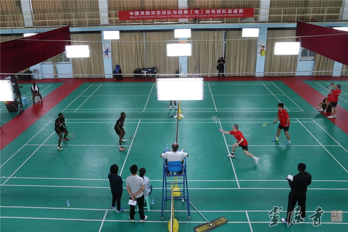 灵隐寺羽毛球队和刚果(布)羽毛球队在浙江体育运动中心进行友谊比赛