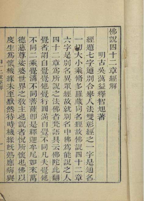 《四十二章经》是我国最早期翻译的经典之一,也是中国正式记载翻译佛经的开始。在东汉永平十年,当时在位的皇帝是汉明帝,有一天晚上,汉明帝做梦,梦见一位相貌庄严、全身金光灿烂的金人,在金銮殿的上空飞翔,梦醒之后,汉明帝让大臣们解梦,一位叫傅毅的大臣说,这一定是西方的佛陀,于是汉明帝派了十八人的使团到印度去求法,他们在途中遇到了来中土弘扬佛法的迦叶摩腾和竺法兰两位尊者,于是便把二位尊者迎请到了洛阳,汉明帝命人修建了白马寺作为译经场所,就是在白马寺二位尊者译出了《四十二章经》。