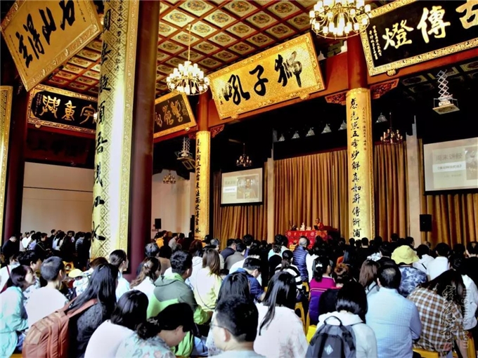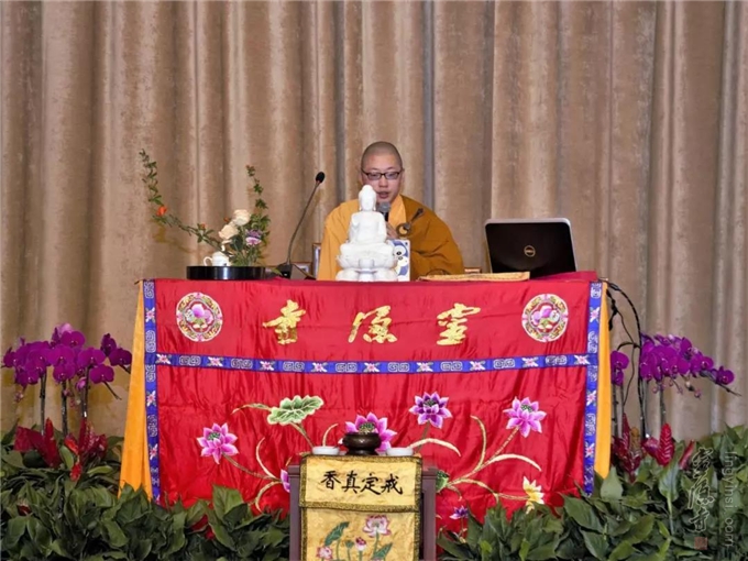 大众以虔诚之心,恭迎惟量法师播撒智慧甘霖。