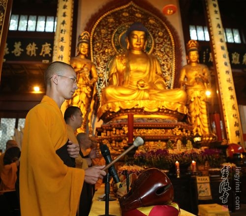 在四川。明朝的时候有一位破山海明禅师,那时候战乱四起,当时有位军阀叫李立阳,他攻陷了四川以后就想要屠城,把这全城的人都杀掉,但是很多人都没有办法。破山海明禅师是一位大禅师,他用这种佛门菩萨大无畏的精神,只身去找这李立阳军阀,他就劝李立阳说:你不能杀生,上天有好生之德。你想要做四川乃至于全中国的统治者,就要怀着一颗慈悲之心去爱护众生,特别是爱护每一个人,怎么可以去屠杀平民百姓。破山海明这样说了以后,李立阳心生挑衅,就说上天有好生之德,可是我没有啊,你有好生之德,那好,你要救千千万万的百姓,我就提一个要求,你能做到我就不屠城。这个要求是什么呢?那就是这里面前摆着一盘肉,只要你把它吃掉,我就不屠城、我就不杀人。李立阳料到破山海明禅师是一位纪律精严的大禅师,怎么可能同意这样的要求呢?可是没有想到破山海明禅师为了千万的百姓,他敢于去吃掉这一盘肉。就像我们灵隐寺的济公和尚说:"酒肉穿肠过,佛祖心中留。"他吃下这一盘肉,好像自己是犯戒了,可是他用菩萨这种大无畏的精神,"我不下地狱,谁下地狱"的精神,救了整个四川的人民,这就是菩萨的情怀。