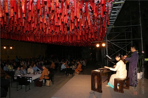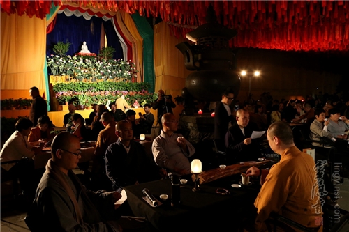 10月13日晚,以"慈悲 包容 感恩"为主题的灵隐寺"云林茶会"在灵隐寺大雄宝殿前广场举行,来自社会各界的嘉宾茶友、大德护法、善信居士200余人在清朗秋风和隐隐的桂香中听闻佛学院法师开示主题,品香茗、聆佛音、悟禅意。