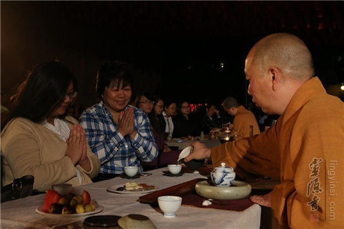 云林茶会现场,法师居士们相继登台,为茶会来宾供养梵音和禅茶艺术。禅与茶,历来就有甚深的因缘,茶的清净淡泊、朴素自然、韵味隽永,正是禅者所追求天真自然的人性归宿。茶与禅的不解之缘,以茶悟道,茶禅一味。
