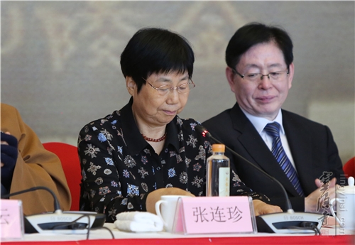 张连珍主席在讲话中说,江苏是我国经济较为发达的省份之一,佛教非常繁荣。金陵刻经处传承的木板雕刻印刷技艺,清净庄严,典雅精致,2009年成功入选世界非物质文化遗产名录。希望金陵刻经处以此次纪念会为契机,加强雕刻印刷技艺的保护,充分展示中华传统文化的深厚底蕴。也希望金陵刻经处新馆能成为保护和传承雕刻印刷技艺的重要场所,成为中国佛教文化和传统文化的教育基地。
