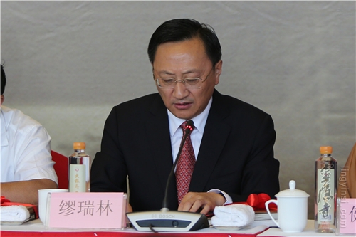 缪瑞林市长在致辞中说,金陵刻经处成立150周年纪念会的举行,是中国佛教界的一次盛会,也是古都南京的一桩喜事,更是弘扬中华优秀传统文化的一大机缘。纪念活动举行的一大目的,就是为了通过古为今用、推陈出新,充分挖掘金陵刻经处的社会文化价值,传承和弘扬南京佛教优秀的历史文化传统,为南京这座城市注入更多的文化内涵。