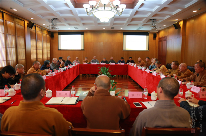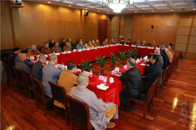 2016年12月21 日,杭州市佛教协会会长办公(扩大)会议在我寺华严阁召开。市民宗局副局长唐明壮,宗教事务处处长胡胜军,市佛协会长光泉法师、副会长定本法师、月真法师、智圆法师,秘书长钱俭忠,以及杭州各佛教道场的负责法师出席了会议。