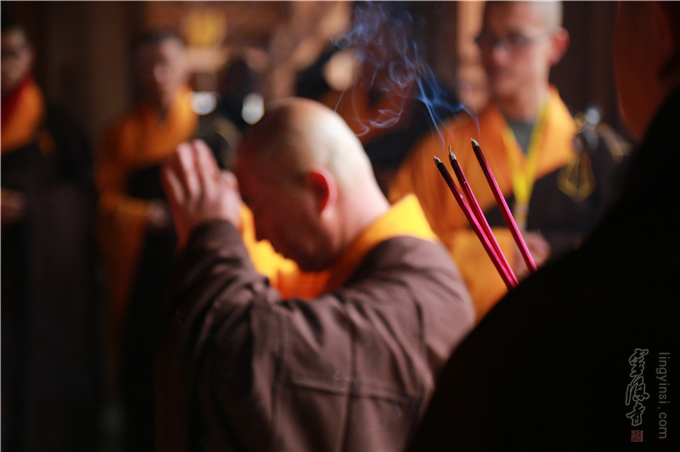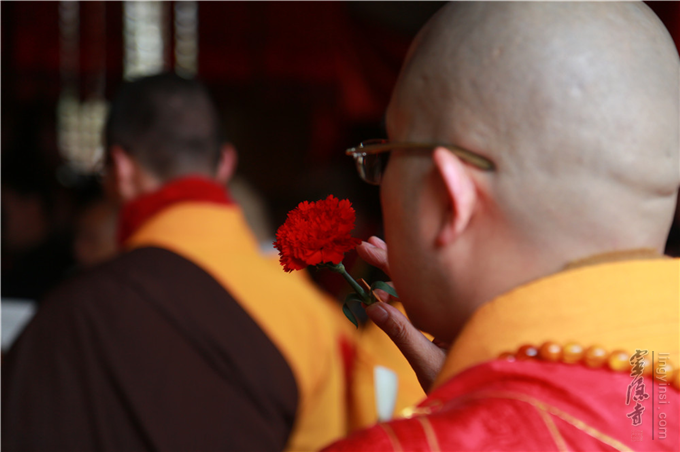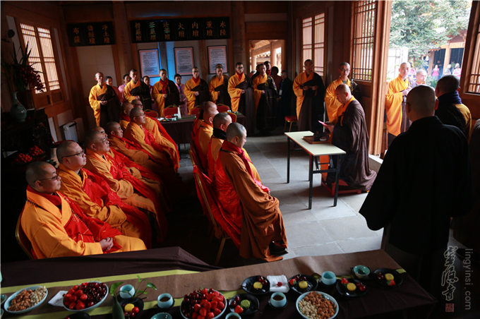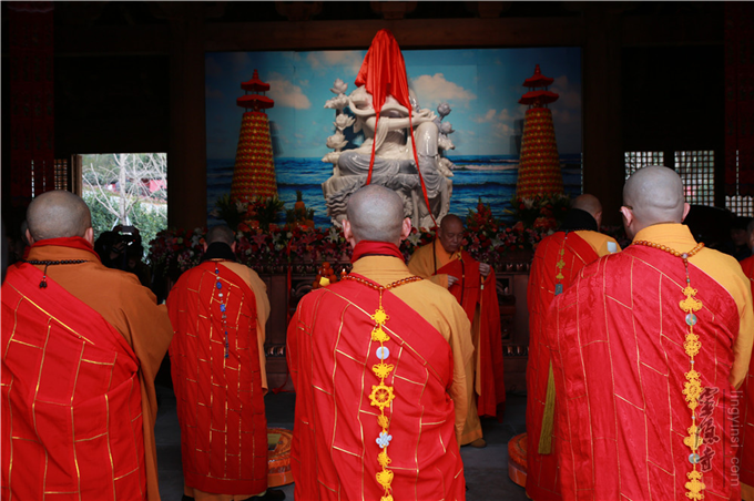 上午9点30分,延福寺监院普祥法师于客堂诸山座前上香,迎请诸山主持佛像开光法会。道慈大和尚、惟航法师、信光法师与诸山长老依开光仪轨,共同拈香、说法,"用巾拂尘",荡涤尘垢光灿烂,洗净人间万虑悲;"举镜照空",圆光普照于十方,咸令众生增福慧;"朱笔点六根",用此笔点开六根,互助互融当起妙用;点眼眼通圆照法界,点耳耳通妙闻十方;点鼻鼻通遍嗅诸香,点舌舌通善说妙法;点身身通分身尘刹,点意意通普润群生。以杨枝净水,绕场洒净加持,祈愿佛菩萨慈力加被,仰仗三宝之功,祈愿世界和平、国泰民安、消灾延寿、福慧双增。