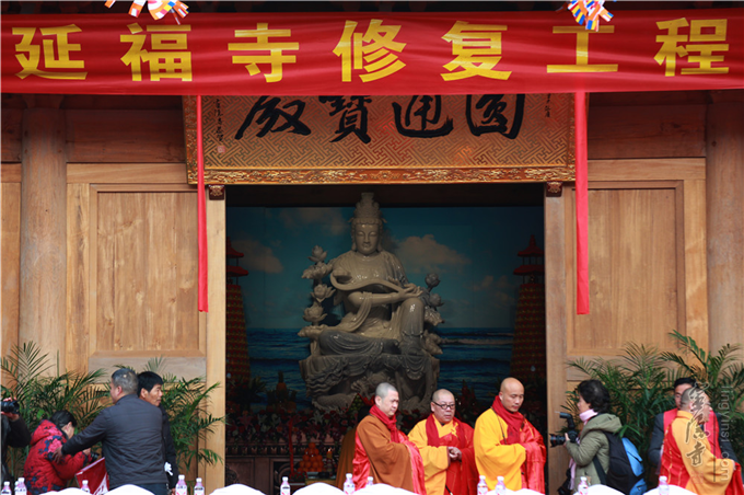 12月29日,全国重点文物保护单位、灵隐寺下院延福寺修复工程竣工仪式暨开光法会在武义县桃溪镇延福寺隆重举行。浙江省委统战部部长冯志礼,金华市委书记赵光君,浙江省民宗委副主任倪忠扬,中国佛教协会副会长、浙江省佛教协会名誉会长、普陀山佛教协会会长、普济禅寺方丈道慈法师,浙江省佛教协会会长怡藏法师,浙江省佛教协会副会长光泉法师,浙江省佛教协会副会长,普陀山佛教协会副会长惟航法师、信光法师应邀出席。武义县党政及相关部门领导莅临指导;延福寺两序大众及信众弟子千余人共襄盛举。