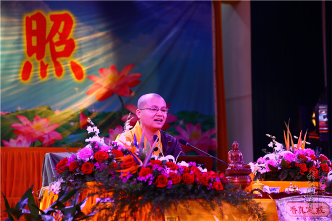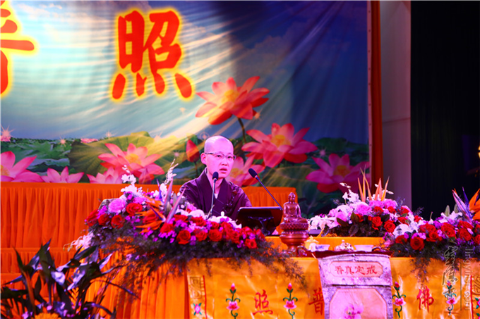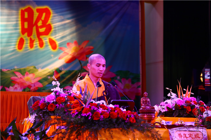 当天上午八点半,四众弟子至诚迎请讲经法师至讲经会场,升法座,宣流法音。首先由中国佛教协会副会长、哈尔滨极乐寺住持静波法师作示范讲经,他高踞法座,现庄严身,展广长舌,作狮子吼,为大众宣讲《正知正见,讲好佛教自身的故事》。他表示,只有坚持"四无畏":不怕死、不怕生(人身难得)、不怕烦恼(污泥才能出莲花)、不怕主宰(因果自作自受,不受佛菩萨、不受神的主宰),才算是一个真正的佛弟子,一个真正的修行人。