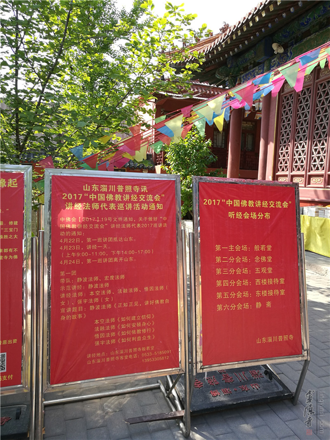 此次巡讲活动,得到了山东省佛教协会的大力支持。作为地主的淄博普照寺在活动前夕作了大量的宣传工作,专门在寺内外设置了多幅巡讲团来鲁地举办讲经法会的宣传海报,所以吸引了不少从外地远道前来听经闻法的善男信女。为了满足大众闻法的热情,寺院方面特别在主会场般若堂以外,又增设了念佛堂、五观堂、西楼接待室、东楼接待室及静斋五个分会场。
