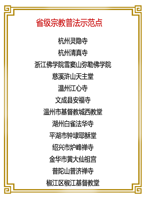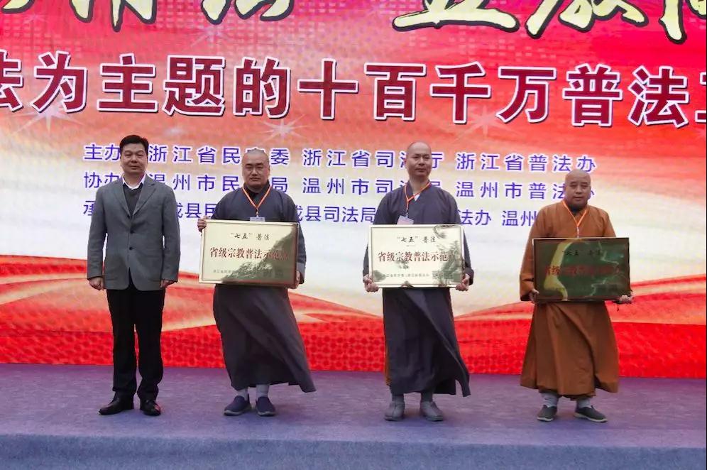 以宪法为主题的"十百千万"普法工程开展以来,在各级民宗、普法部门的悉心指导下,我省宗教界充分发挥主体作用,精心打造了杭州灵隐寺等14处省级宗教普法示范点、中国佛学院普陀山学院等105处省级宗教法治宣传教育基地,形成了宗教界崇法学法守法用法的良好氛围。
