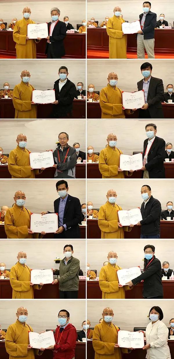 本届理事会佛教教育委员会还聘请了魏道儒、张风雷、何建明、张文良、李四龙、周学农、徐文明、刘成有、黄夏年、纪华传、包胜勇、刘鹿鸣、喻静、明尧等14位国内知名专家学者担任相关工作小组的成员。演觉会长向专家学者颁发了聘书。