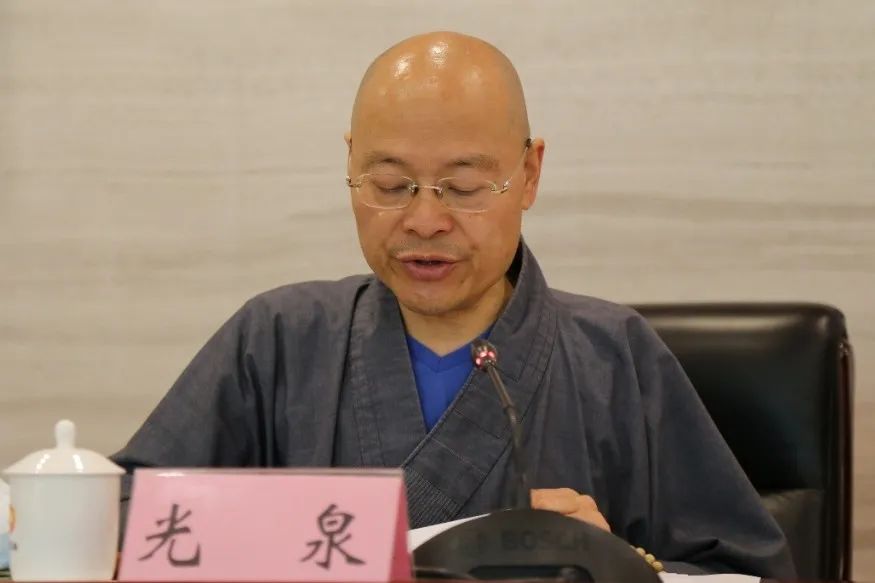 ▲中国佛教协会副秘书长光泉法师通报《中国佛教协会第十届理事会佛教教育委员会五年工作计划》