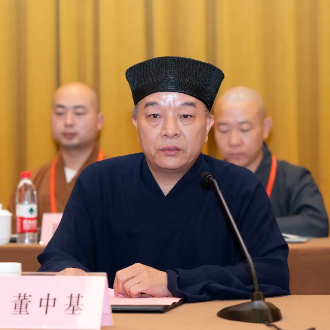 ▲市道教协会会长董中基代表市级兄弟宗教团体致贺词