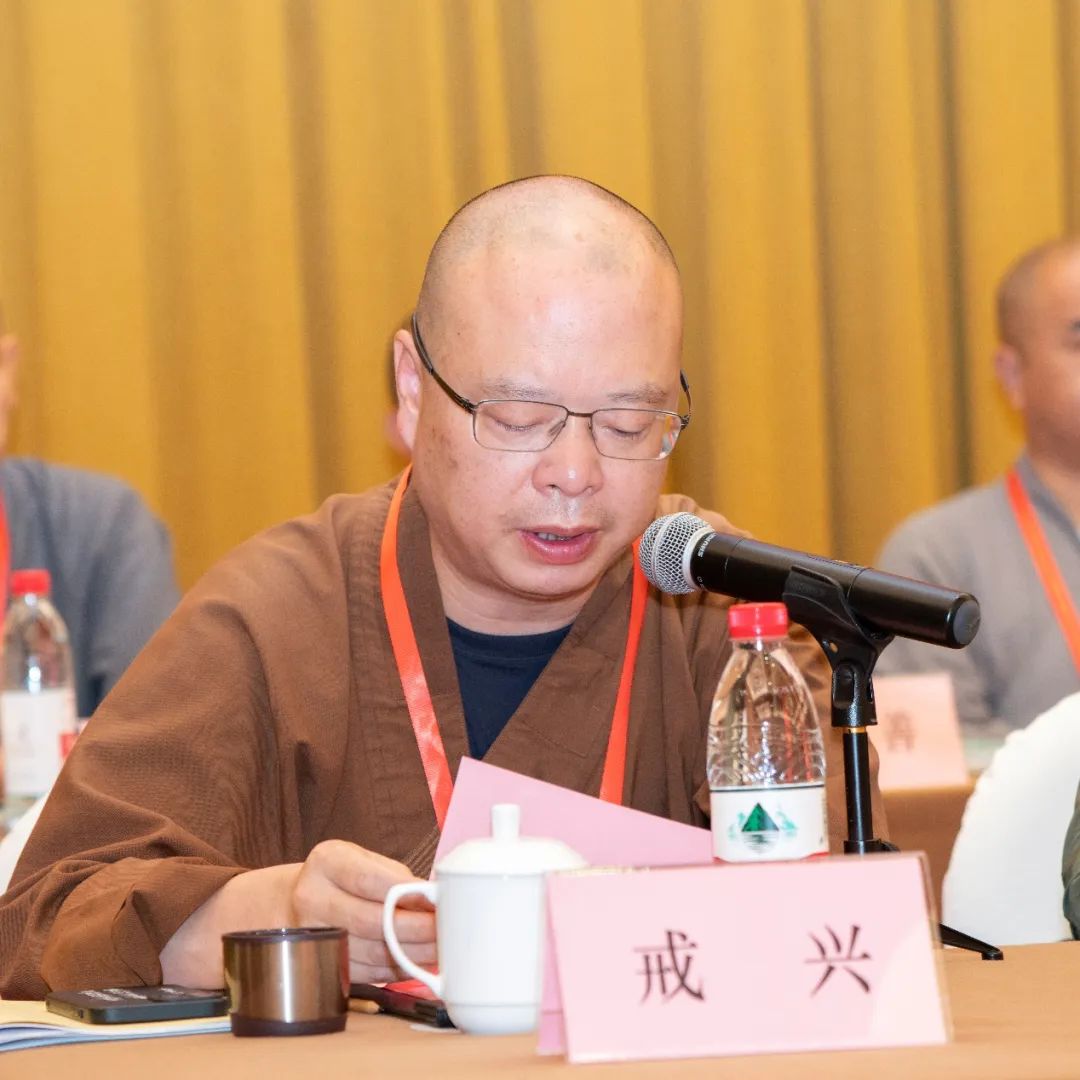 ▲市佛协六届理事会副会长戒兴法师宣读中佛协贺信