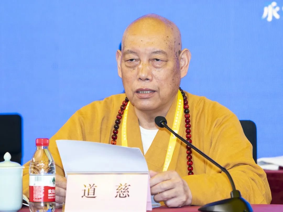 ▲中国佛教协会副会长、浙江省佛教协会名誉会长道慈法师致辞