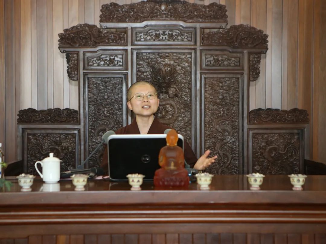 讲经现场清净庄严,与会大众热情高涨。现场问答环节中,听众先后向讲经法师提出“如何驱赶蚊虫”“人间佛教与传统佛教侧重点的不同”“如何处理与不信佛的家人间的关系”等问题。在回答“佛法与世间法区别”的提问时,妙道法师指出,佛法导向菩提涅槃,世间法导向烦恼生死,二者确有不同;但佛法也离不开世间法,如《六祖坛经》云:“佛法在世间,不离世间觉,离世觅菩提,恰如求兔角”。因此,佛法与世间法非一非异。面对“在奉侍母亲和入寺礼佛间如何抉择”这一问题,妙青法师以普贤菩萨十大愿王中“恒顺众生”的精神鼓励听众以孝顺母亲为先,并说明了“孝道即是佛道,学佛不违孝亲”的道理。四位法师善应群机、辞辩无碍,与会大众在饱餐法味之余,对讲经法师连连称赞。