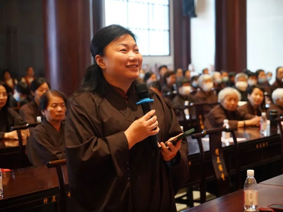 2022中国佛教讲经交流会金莲花二等奖获得者,上海沉香阁学妙法师依《地藏菩萨本愿经》为大众作“人间佛教众生观”主题宣讲。现场居士请法师开示,在家居士如何在生活中实践地藏法门,学妙法师从深入理解经典含义,践行止恶、诵经、持名、塑画形象等法门,以及学习地藏菩萨大愿精神,断除烦恼、安住正念等多个层次详细回答了居士的提问。