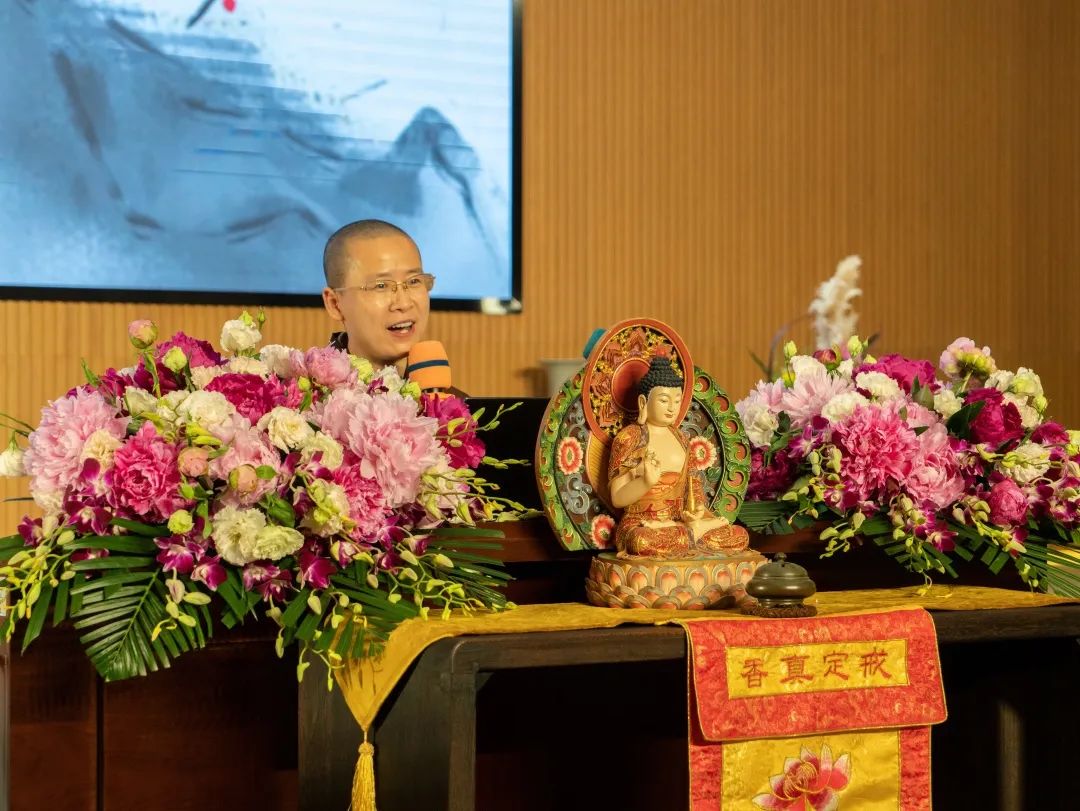 妙槃法师通过业感缘起、缘起性空之理,为大众详细地阐明了人间佛教因果观。现场法师请问“如何理解三轮体空的布施之理”“在践行人间佛教的同时如何把握佛法核心主旨”,法师结合当下时代,鼓励在场大众以空性智慧为导,深信因果,断恶修善,自利利他。四位法师的回答言简意赅,事彰理显,赢得在场大众掌声连连。