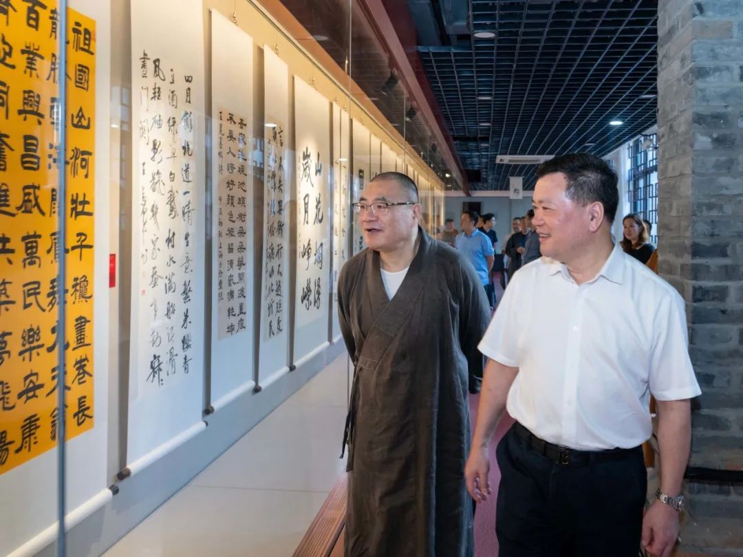 9月14日上午,由浙江省民宗委、杭州市民宗局指导,浙江省佛教协会、杭州市佛教协会联合主办的“翰墨颂盛世,丹青谱华章”浙江省佛教界暨杭州市佛教界庆祝中华人民共和国成立75周年书画展在杭州国画院美术馆开幕。