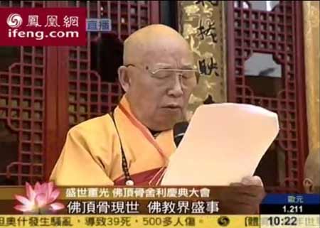 2010年6月12日上午9点15分,南京大报恩寺七宝阿育王塔金棺银椁被打开,佛顶真骨盛世重光。中国佛教协会会长传印长老及诸位副会长,江苏省佛教协会会长明学长老及省内各大寺院住持,台湾佛光山开山宗长星云长老、澳门佛教总会理事长健钊长老等,以及四众弟子数千人参加了法会。国家宗教事务局、国家文物局和江苏省、南京市有关领导参加了佛顶骨舍利盛世重光见证仪式,并出席庆典。十一世班禅额尔德尼•确吉杰布、香港佛教联合会会长觉光长老等专门发来贺电。
