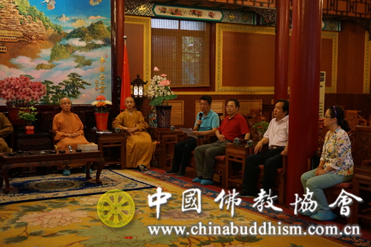 7月22日上午10时,由泰国、缅甸、柬埔寨、老挝等国记者组成的"中外记者2013中国佛教文化之旅"采访团一行访问了中国佛教协会。采访团受到中国佛教协会副秘书长张琳、演觉法师和国际部主任、中国佛教协会新闻发言人普正法师的热情接待。双方在广济寺怀远堂进行了亲切友好的交流,交流活动由张琳副秘书 长主持。