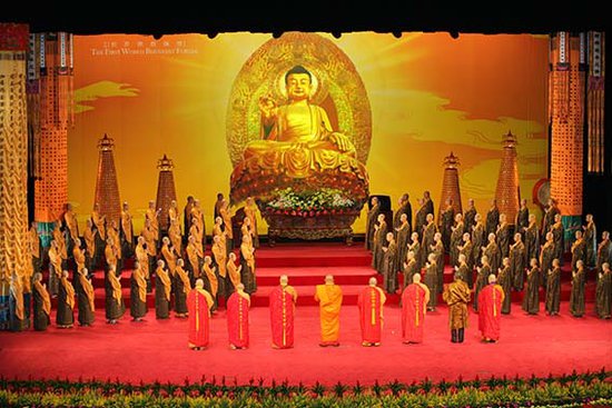 4月13日至16日,首届世界佛教论坛在浙江杭州和普陀山举行,共有37个国家和地区的佛教界、学术界、企业界、政界等代表1000余人出席。这是中国大陆首次举办的世界性多边大型宗教会议。本次论坛的主题为"和谐世界,从心开始"。(见图)