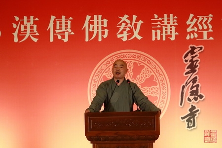2013年10月30日上午,"2013汉传佛教讲经交流会"第六场如期举行。这是本届讲经交流会最后一场,由江西佛学院大虚法师、中国佛学院乾空法师、重庆市渝北区龙法寺惟正法师、杭州市三天竺法镜讲寺慧光法师和杭州市西湖区永兴寺本心法师共6位法师,为在场500多名法师、居士、信众宣讲《遗教经》《四十二章经》《八大人觉经》《十善业道经》四部经典。本场讲经由浙江省佛教协会副会长光泉法师主持。