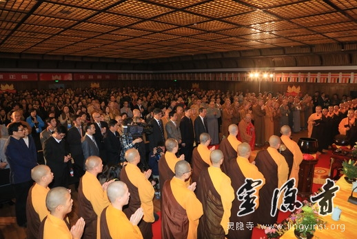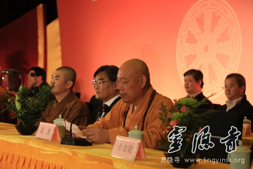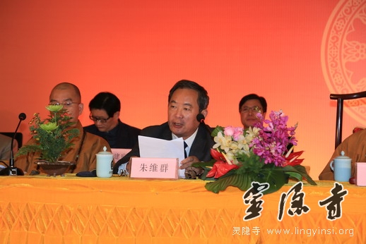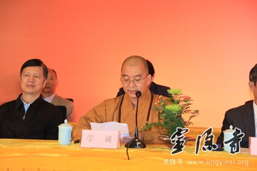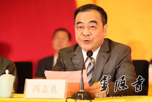 浙江省省委统战部副部长、省民宗委主任冯志礼代表省委统战部和民宗委致辞,他认为,2011年杭州佛学院被授予"汉传佛教讲经交流基地",成为了培养新时代佛教僧才的基地,这正是浙江佛教和杭州佛教发展的一个增上缘,希望浙江佛教和杭州佛教惜缘、护缘,把握住这个殊胜的因缘,努力建设东南佛国净土,促进社会和谐、人民幸福。