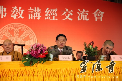 国家宗教事务局蒋坚永副局长也代表国宗局祝贺此次汉传佛教讲经交流会的召开。他指出,举办讲经交流会,要特别重视三个方面,一是要巩固成果,推广讲经说法;二是要引领时代,创新讲经交流;三是夯实基础,丰富讲经交流经验。