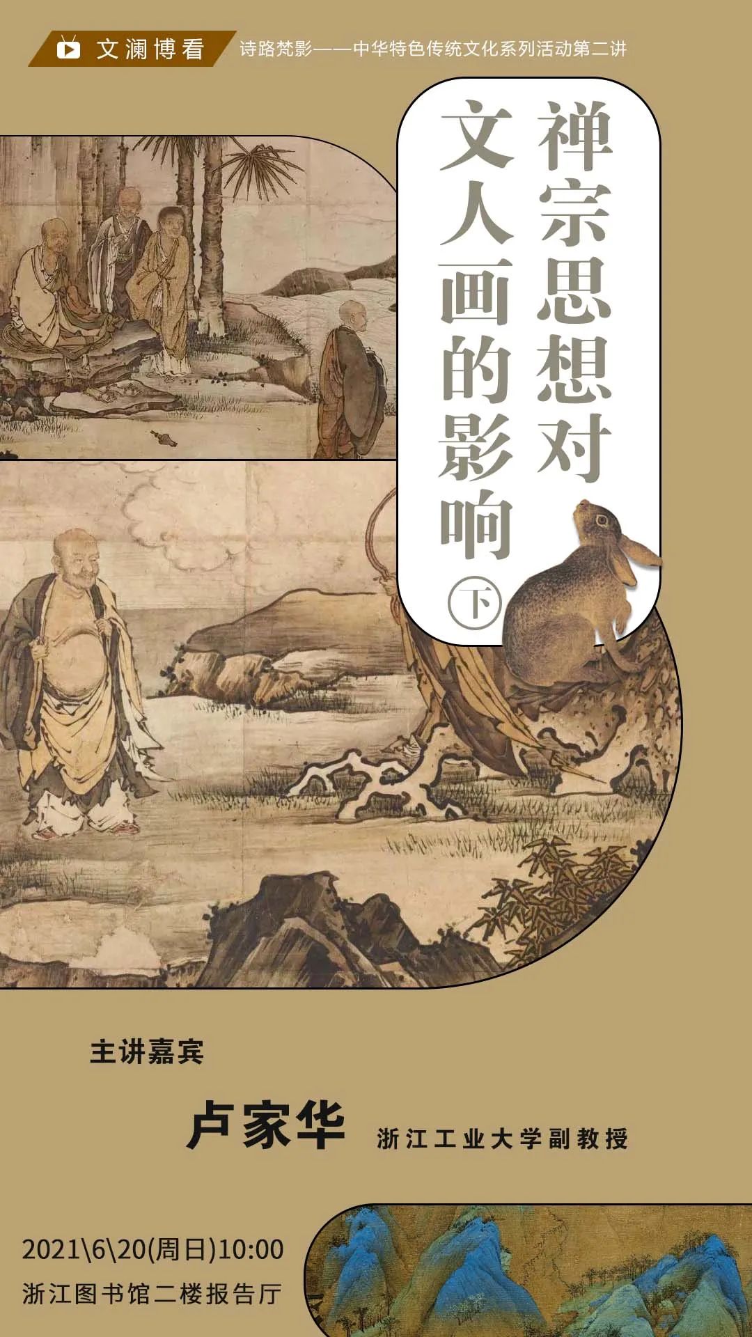 本周末,第二讲《中国禅宗绘画艺术赏析(下):禅宗思想对文人画的影响》将在浙江图书馆举行。