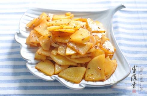 单纯的土豆片,不用加别的只略放些盐和生抽,原汁原味的土豆就很好吃了!