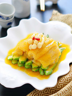 【主料】:干竹荪约10克、秋葵6个、南瓜40克、海鲜菇15克、枸杞2-3粒、素高汤300克(或者等量清水),盐适量、水淀粉1大勺。