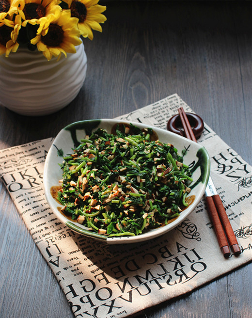 材料:马兰头、香干、盐、麻油、糖、花生制作:1马兰头掐去老根,清洗干净。2香干洗后放进锅内加冷水煮开两分钟后捞出 。3把洗净的马兰头氽水去除麻涩味捞出晾凉。4炒锅内加少许食用油,小火把花生米炒熟。压碎待用。5马兰头、香干切碎, 加入花生碎及盐、麻油、糖拌匀即可食用。小贴士1、马兰头性味辛凉、微寒,孕妇切记慎食。2、这道是凉拌菜,制作中请注意卫生。
