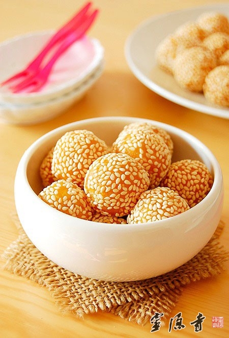 【用料】:山芋/红薯1个(蒸熟去皮后约200克)、糯米粉 80-100克、白砂糖 20克、白芝麻适量、炸油适量