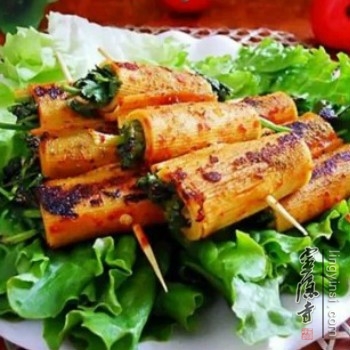 【食材】:北豆腐半块、韩式辣酱适量、孜然粉适量、豆油适量、芝麻适量