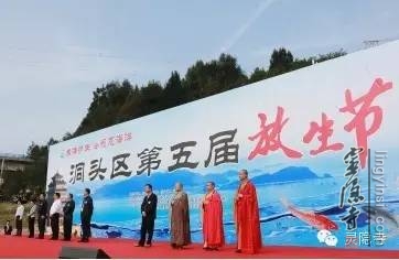 奠基仪式后,光泉法师率灵隐寺志工团60余人步行至国际放生台,参加洞头区第五届放生节。