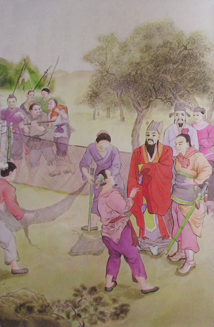 成汤见此情景,感叹地说:"猎人这样网罗捕捉,不只手段残酷,而且鸟兽势将绝种,违逆上天好生之德。"因此命除三面猎网,只留一面,改祝祷词说:"愿向左的,快往左逃,愿向右的,快往右逃,愿上飞的,速往上飞,愿不逃的,速向下逃。只有命该绝的,才入我的网中。"