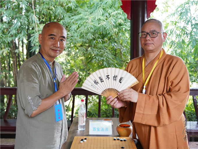 ▲法师们向棋手赠送折扇