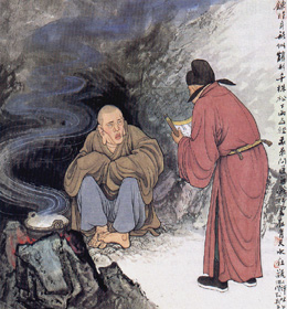 在出家人中,有人间比丘,也有独居比丘。人间比丘弘法利生,服务社会;独居比丘深山岩穴,清净修道。有些人间比丘是人在红尘,心在山林;有些独居比丘人在道场,心在世俗。像懒瓒禅师,遇到皇帝的宠召,视如閰王的召魂;宝物的赏赐,看作拖累负担;实在已是一个超越人间的圣僧了。