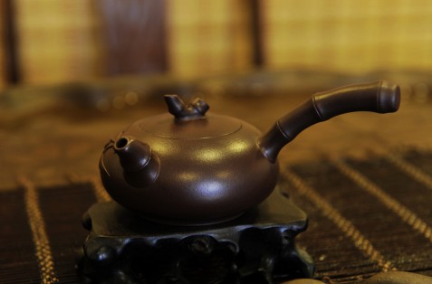 "一壶不事二茶"即一把壶只泡一种茶。因为紫砂壶具有特殊的双气孔结构,善于吸收茶汤,所以一把久经使用的紫砂壶,即使不加茶叶,单用沸水亦能冲出淡淡茶汤来。因此,一把「不事二茶」的茶壶冲泡出的茶汤才能保持原味的鲜度与纯度,否则今天乌龙,明天普洱,后天花茶,那么必然茶味混沌,了无个性可言。