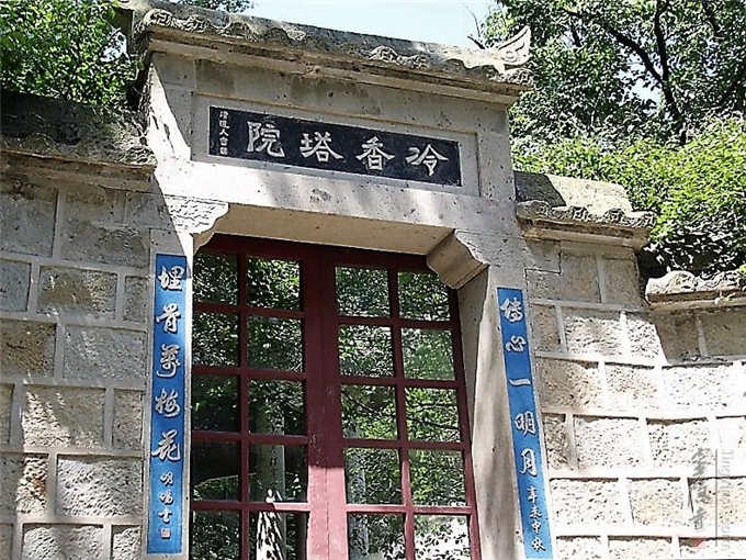 "冷香塔院"联"传心一明月,埋骨万梅花"