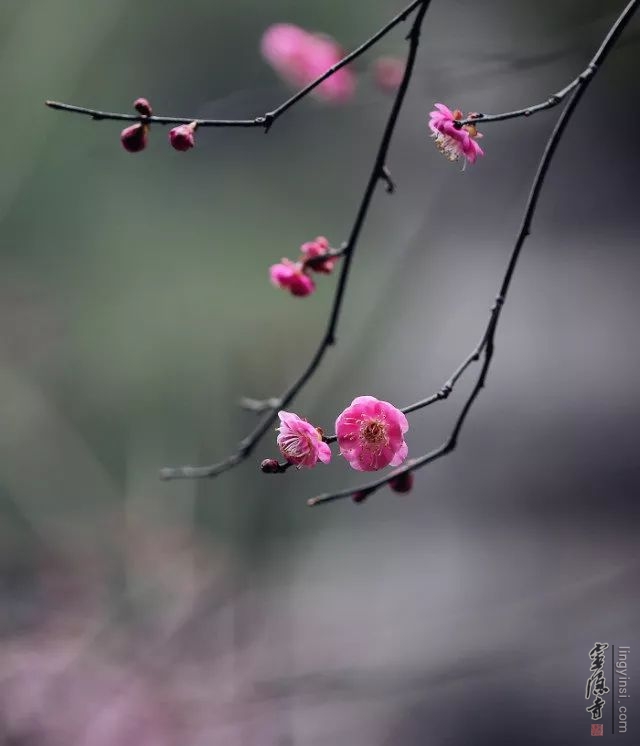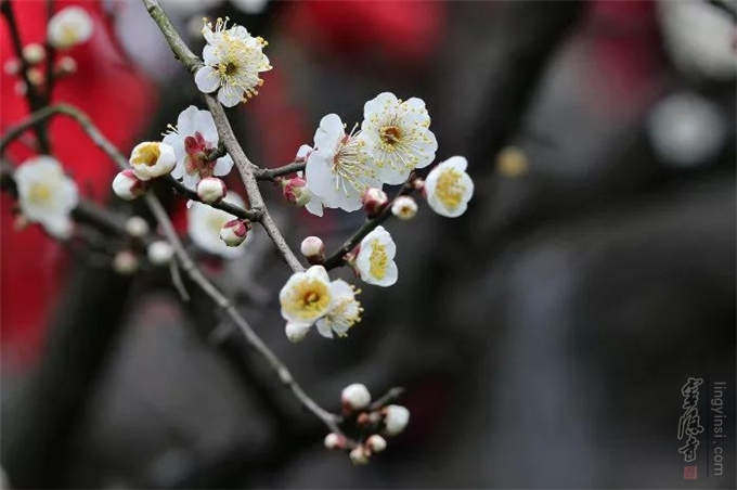 中国文学史上爱梅诗人很多,尤为著名的是有"梅妻鹤子"之称的南宋诗人林和靖。1876年春天,八指头陀初访杭州西湖,特意到孤山林和靖墓前拜祭。对林和靖心仪已久的诗人竟一连写了五首绝句,感兴抒怀,首首有梅。