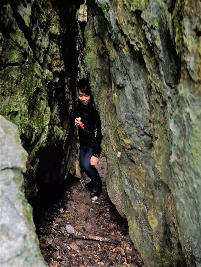 几人先后底下身段,猫腰钻入石缝,匍匐前行,入内寻觅。石缝内渐渐开朗,遇转弯处,再往前寻,走到尽头是一断崖,居然什么也没有发现。